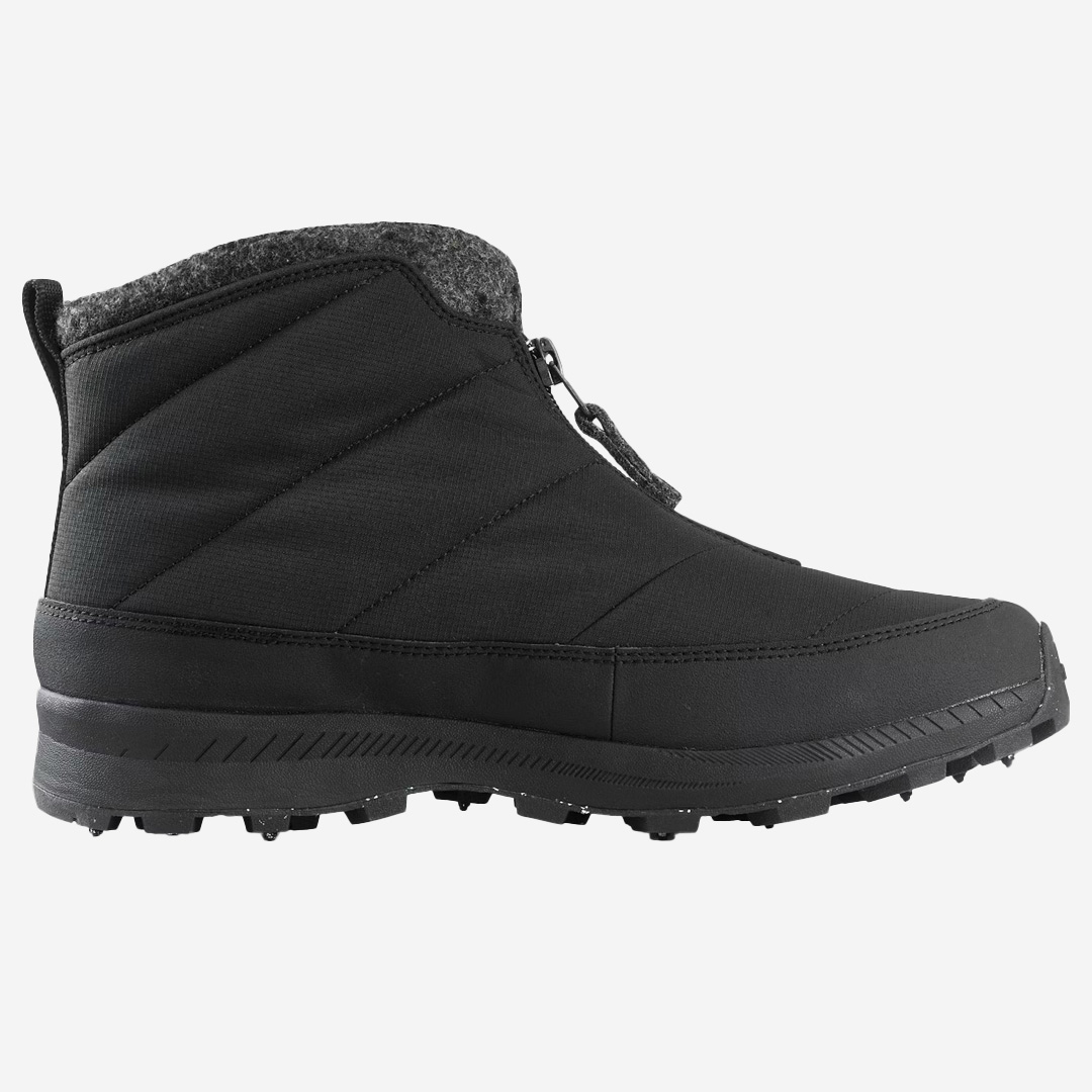 Yttersulan är utrustad med BUGrip®-dubbar av karbidstål som ger ett säkert grepp på isiga underlag och våta vintergator, vilket gör IceBug Sala vinterkängan till en pålitlig och bekväm sko för kalla och hala vinterdagar.